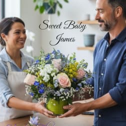 Price: $65.99Blue Bayou Bouquet with delphinium and roses